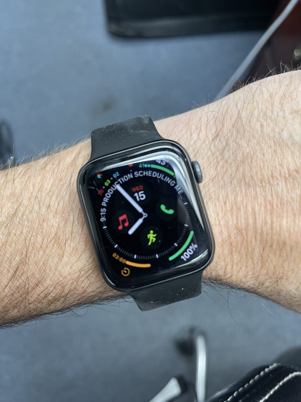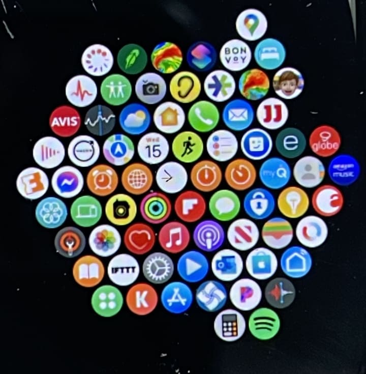 Rings- Apple has stand, exercise, and move rings designated by the colors red, green, and blue. My goal is to close out these circles by day's end. Available as a complication on my home screen.