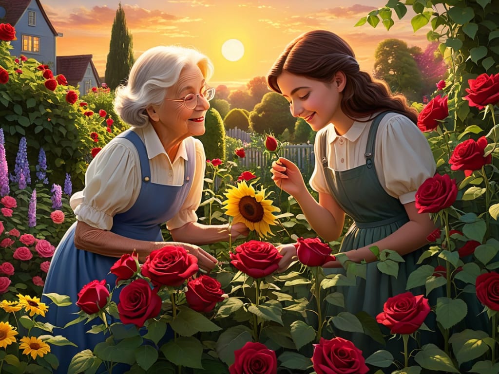 The sun began to set, casting a golden hue over the garden as Clara continued to share her knowledge. “This rose,” she said, pointing to a deep crimson flower, “represents love. It’s said that if you whisper your heart’s desire to it, the rose will carry your wish to the stars.”