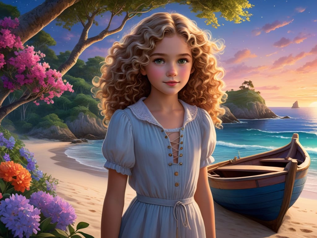 Sophie, a spirited young girl with a wild imagination and an insatiable thirst for adventure, had heard the whispers of Eloria from her grandmother, a woman who often spoke of fantastical places as if she had traveled there herself. Every night, Sophie would lie in bed, gazing at the stars, dreaming of visiting that enchanted island.