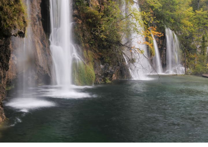 Hours seemed like minutes, and before we knew it, we were met with a breathtaking sight: a hidden waterfall, cascading down into a shimmering pool of turquoise. It was flanked by large moss-covered rocks and an old wooden bridge, worn but sturdy, stretched across the top of the falls.