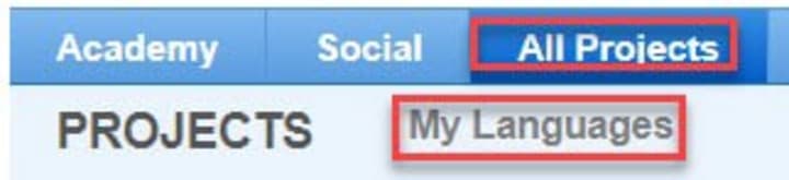 - Right below the “All Projects” tab, you will see a link called “My Languages”. Click on it.