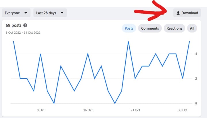 This is a detailed list of posts and who posted it, the number of reactions and the URL (web address) of the actual posts. It could be useful in attempting to direct the content of your group especially if you are one of the main posters of articles in the group.
