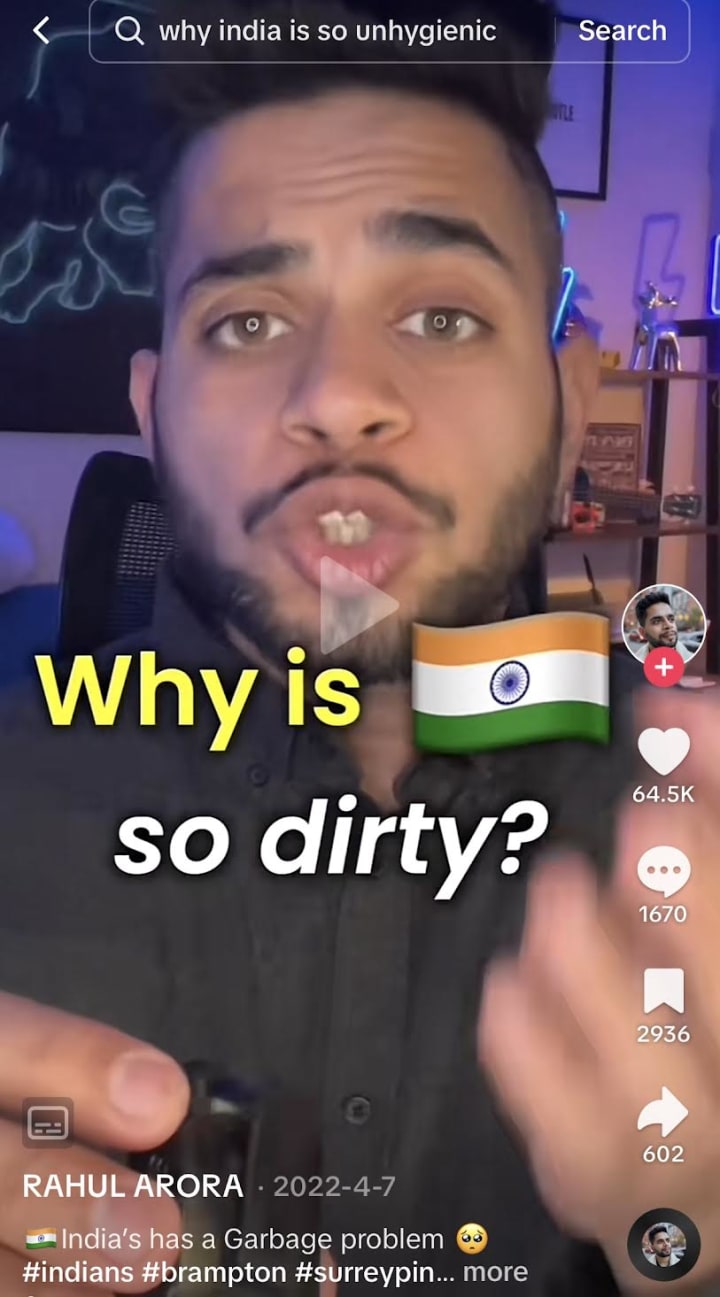 TikTok seems to be filled with so many videos that portray India & Indians as being filthy