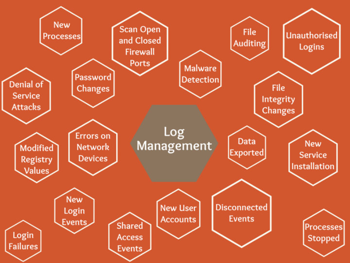 Log management can identify crucial information about the happenings on your company's OSs and networks being documented. This can include:
