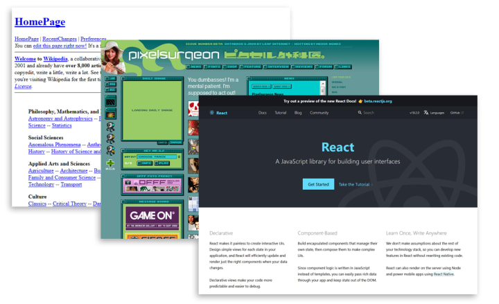 Although we are no longer limited by technology, it seems that a lot of modern website design is soulless, made the same, copied over and over without adding anything new. Everything is made out of boxes and follows the same rules like there's no thought put into it. All websites use templates and libraries that make them easy to build which, don't get me wrong, are really useful, but also come at the cost of individuality.