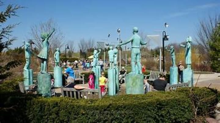 The Monolith, a contemporary sculpture that features 121 intertwined human figures.