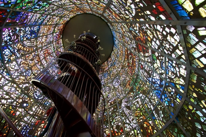 Among the highlights is the artwork Symphonic Sculpture, a tower of stained glass and