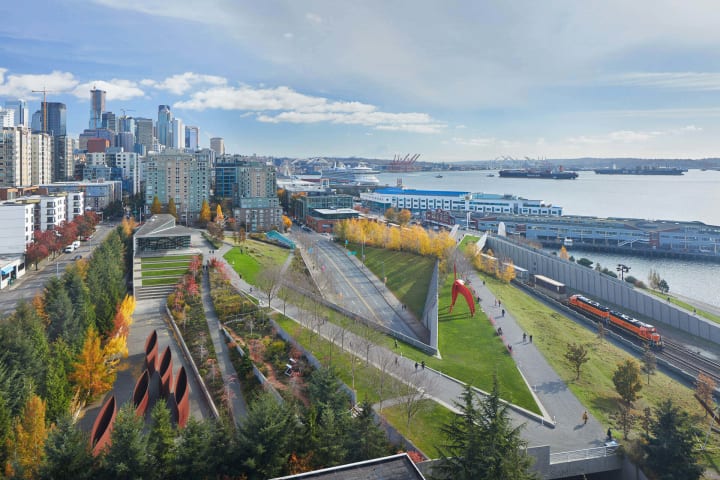 Olympic Sculpture Park in Seattle, Washington, in the US opened in 2007 next to the Seattle Art Museum. This is a former industrial site located on the waterfront near Puget Sound.