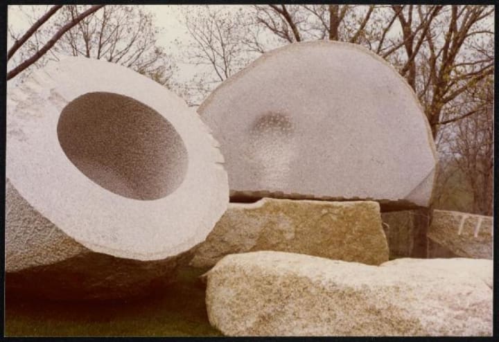 Children enjoy the interactive exhibit Momo Taro by Isamu Noguchi. You can sing inside the granite structure, which has a special aural resonance.