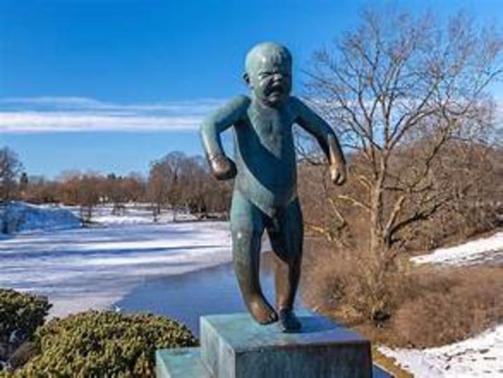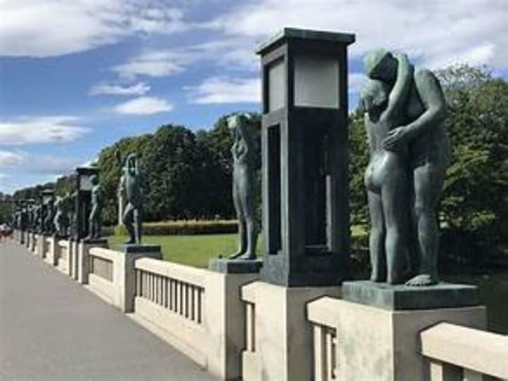 Vigeland Park is officially known as the Vigeland Installation in Frogner Park in Oslo, Norway. The park has 212 sculptures by Norwegian artist Gustav Vigeland created from bronze, iron, and granite. The artist made the artworks from 1924 to 1943 and donated them to the city.
