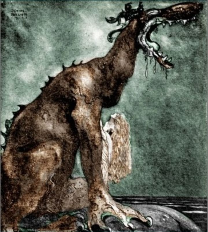 Swedish artist John Bauer was famous for his illustrations. His most popular artworks depicted Swedish folklore and mythology particularly a fairytale Among Gnomes and Trolls. He created artwork in the Romantic Nationalistic style.