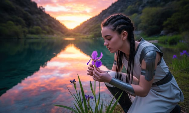 Though she had more talent than fame, she used to fill her canvases with vivid, imagined landscapes. But now, in the neon-lit streets of Neo-Kyoto, where rain slid down holographic ads and the air always buzzed with electric glow, everything looked gray. Her tiny apartment mirrored that emptiness. The canvases leaned blank against the walls, waiting for inspiration that wouldn’t come.