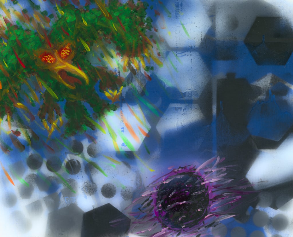 The two Titans clashed in the centre of the city, their initial contact enough to set fire to the very air itself. It didn't matter where you were that day you could hear as their battle rang out into the air. The bird, the Banshee, now a flame roared its counterpart to the screeching wine of the orb. It was a cacophonous music; a descending crescendo, a screeching silence.