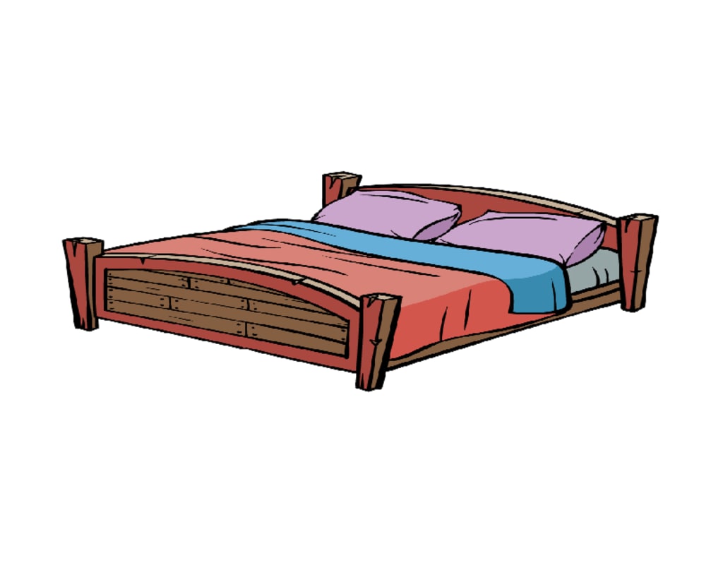 You're practically prepared to add a varieties to your drawing, however first we will polish off the last subtleties and components. To begin with, draw one more wooden support point on the left-hand side of the top of the bed. Then, at that point, interface the points of support on one or the other side for certain bended lines, and afterward add some a greater amount of those wooden components.