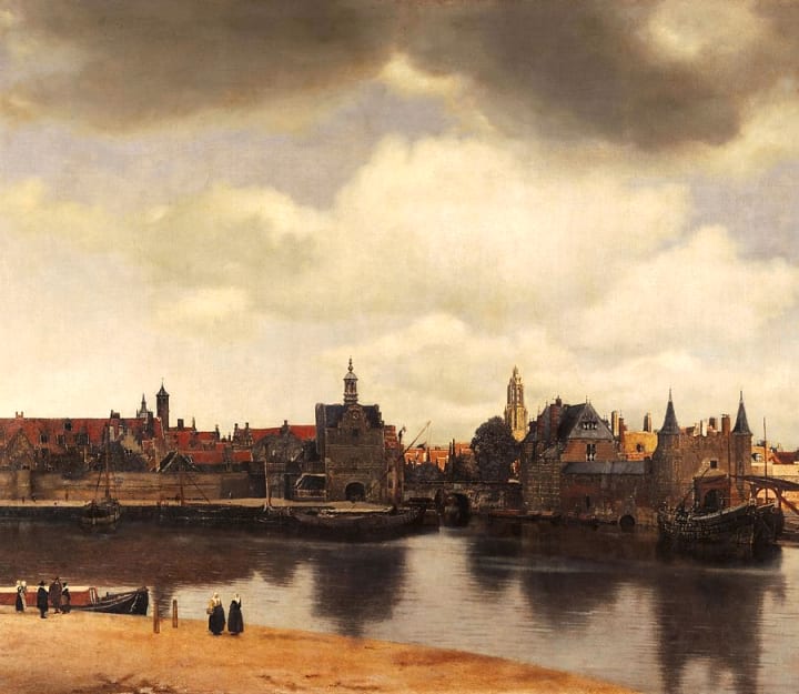 Dutch artist Johannes Vermeer a painter during the Baroque period painted this view of the of Delft, a city in South Holland, Netherlands.