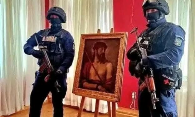 The cold, snow-covered landscape symbolizes both the harshness of life and the spiritual warmth offered by faith. The frozen river and barren trees evoke a sense of desolation, but the presence of Mary and Joseph hints at hope and renewal.