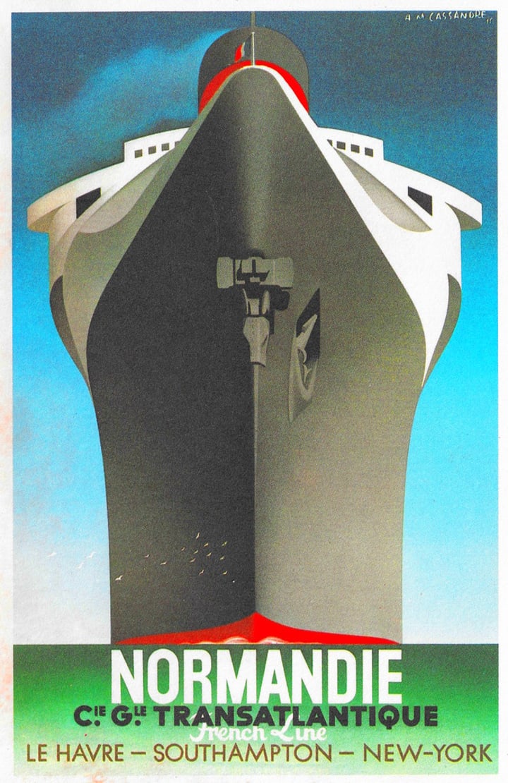 French artist Adolphe Jean-Marie Mouron used the pseudonym Cassandre. He created one of the most iconic posters advertising the Normandie ocean liner. It clearly depicts the streamlined elegance of the ship.