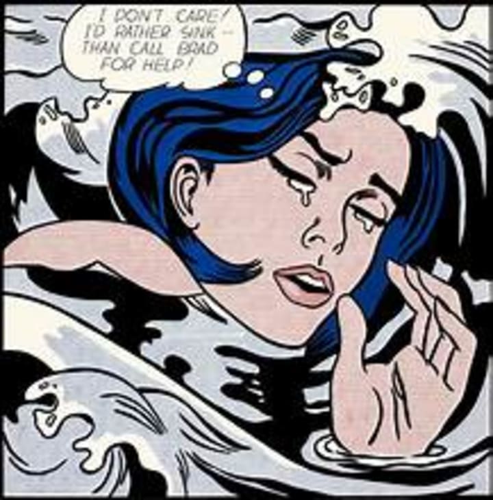 The artist sampled the image from the #83 issue of Secret Hearts. This was aq comic book illustrated by Tony Abruzzo. Lichtenstein altered the picture slights, removed some background elements, and changed the caption.