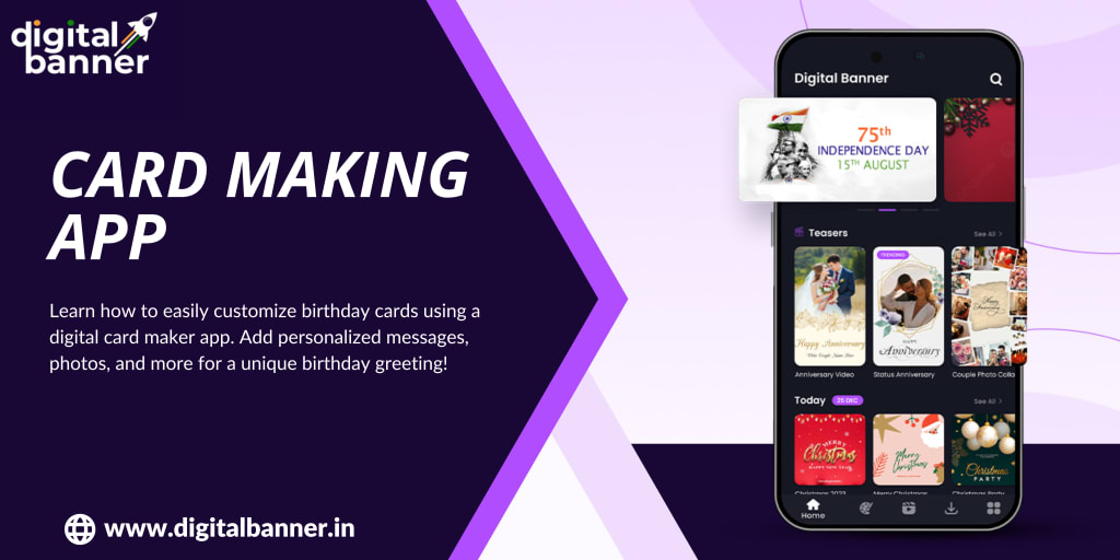 To get started, you’ll need to choose a card making app that fits your needs. One great option is the Digital Banner App, available on Google Play and Apple’s App Store. This app is versatile, offering tools not only for creating digital cards but also for making festival posters, event banners, and more.
