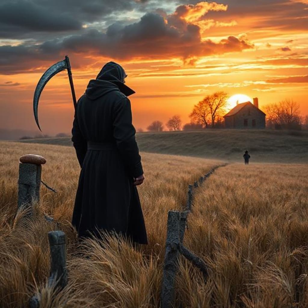 His cottage lay open and empty. The scythe stood in the center of the field, buried halfway in the earth, glowing faintly under the morning sun. Around it, the barley had grown taller than ever before, rustling with an eerie calm.