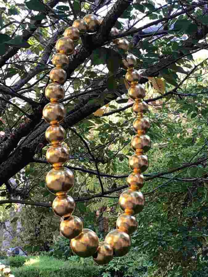 Tree of Necklace Jean-Michel Othoniel. A massive oak tree is laden with an oversized necklace hanging among the moss.