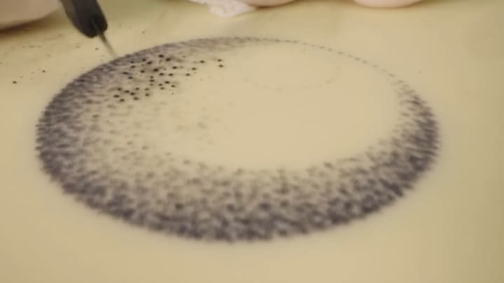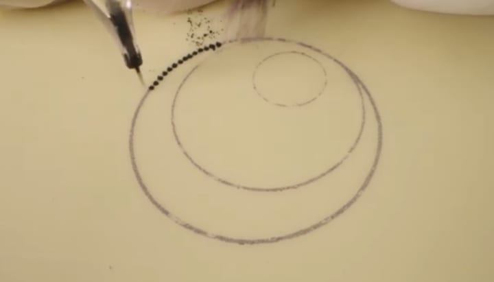 allowing for precise work. I begin with the darkest shade, apply a bit of Vaseline, and off we go. My goal is to create a dotwork shading that goes from dark on the outside to lighter on the inside. For this, I've drawn additional circles as guidelines.