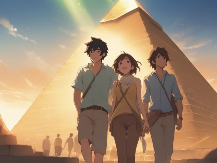 In the scorching heat of the Egyptian desert, James and his family embarked on a thrilling adventure to visit the Great Pyramid. James, a curious and imaginative ten-year-old, was particularly excited about exploring the ancient wonders.