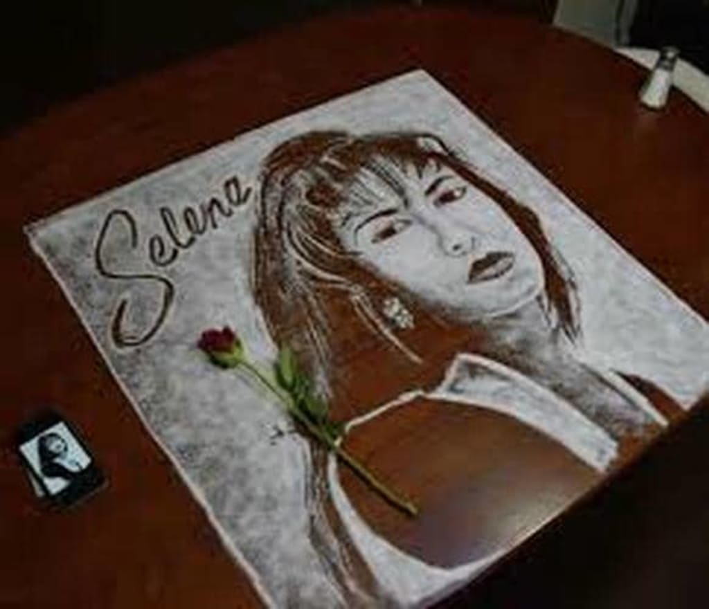 I find it amazing what can be done using salt for artsake for example in this case there is a San Antonio, Texas artist named Rob The Original who had done a portrait of Selena using only salt and that is just an amazing idea. When the artist was creating this one of a kind portrait 250,000 people watched as this amazing work of art was being created. Selena's brother AB Quintanilla was also present for the creation of the Selena salt portrait. The presentation was held at a Mexican restaurant located somewhere in San Antonio. It is too bad that salt can not be framed.