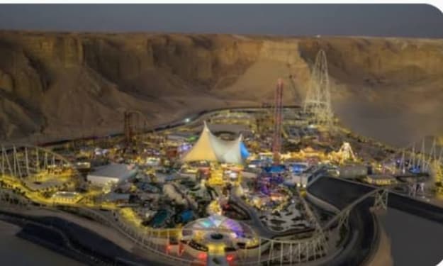 Saudi Gigaproject Unveils the World’s Largest and Fastest Roller Coaster. AI-Generated.