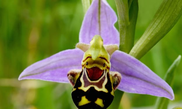 The Enigmatic Bee Orchid: Nature’s Master of Deception In the quiet corners of meadows and grassy slopes, where the earth breathes through the whisper of wildflowers and the sun’s golden fingers gently caress the soil, there exists a flower that is both a marvel and a mystery. This is the tale of the Bee Orchid (Ophrys apifera), a flower that has mastered the art of mimicry, weaving a delicate dance of deception in the heart of nature’s intricate tapestry.