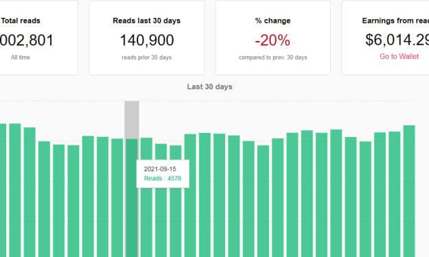 You might have seen that Ad from Vocal, "Join Vocal and make $6,000 a month," while it will take me over a year to get to the $6,000 mark or one million reads. First, we all should be grateful for whatever we have. Writing is compelling, and especially when you are writing over 5,000 words a day, it could help you build an empire.