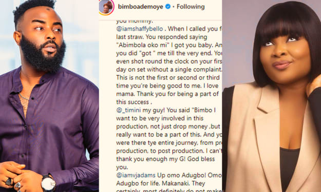 Nollywood actress and movie producer, Bimbo Ademoye, is taking to social media to write an open letter expressing her love and gratitude to some of her industry colleagues, including her longtime rumored lover VJ Adams. Here's what Bimbo Ademoye wrote.