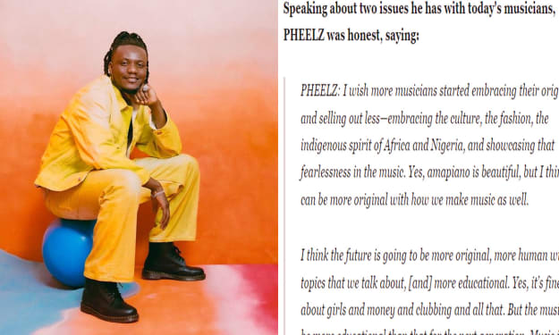 Nigerian musician and producer Pheelz is one of the most respected and renowned artistes working in the industry today. As a producer, he has worked with a huge number of local and international acts, and as an artiste, he has also seen a lot of success and toured all over the world. In a new interview with The Guardian, Pheelz speaks about 2 issues he sees with music today, and advices artistes on what he'll like to see leaned into more and improved upon. Here is what Pheelz had to say.