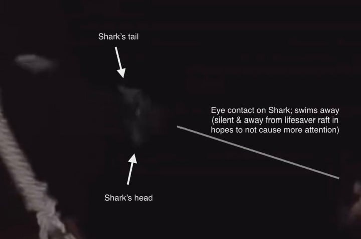 To everyone’s confusion, Cameron began to swim frantically in the opposite direction, away from the life preserver.