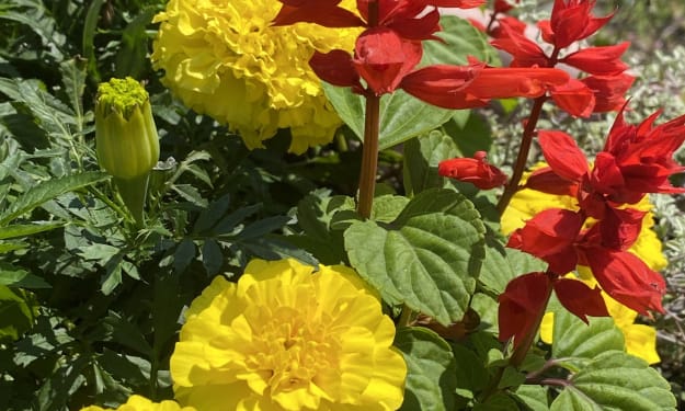 The window was down as a small breeze went through the car. My roots tingled in anticipation as I took in the warmth of the sun that glistened upon my beautiful orange and yellow petals. It was a beautiful day out, perfect for me to be given off, and enjoy the events that would follow. There was lots of carbon for a marigold like me to intake in a forest of noises and cement. While I couldn’t see, I knew it to be true. I had felt the area before – just as I had travelled down the road before. Not that I had personally been down the paths myself.