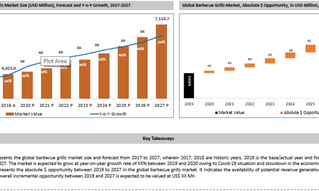 According to a recent market study published by Growth Market Reports titled, the Global Barbecue Grills Market was valued at USD 4,923.0 Million in 2019 and is projected to reach USD 7,114.7 Million by 2027, expanding at a CAGR of 4.9% during the forecast period. In terms of volume, the market is projected to expand at 4.0% during the forecast period. A barbecue grill cooks food by adding heat from underneath it.