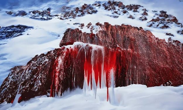 As the 20th century dawned, an intense rivalry unfolded between two polar explorers, Robert Scott and Roald Amundsen, both vying for the coveted title of the first person in history to reach the South Pole. Ultimately, tragedy befell Scott, while Amundsen emerged victorious, planting his tent at the pole before his rivals. Amidst this fierce competition, an unexpected revelation awaited British geologist Thomas Griffith Taylor, a member of Scott's expedition, at Taylor Glacier—an otherworldly waterfall of blood-red hue, now famously known as the Blood Falls.