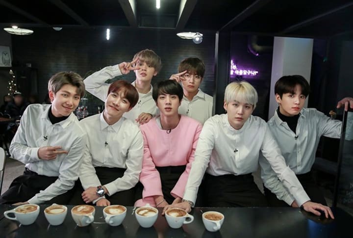 During the 45th "Run BTS!" episode the members learnt to make the best coffee from one of the shop's baristas.