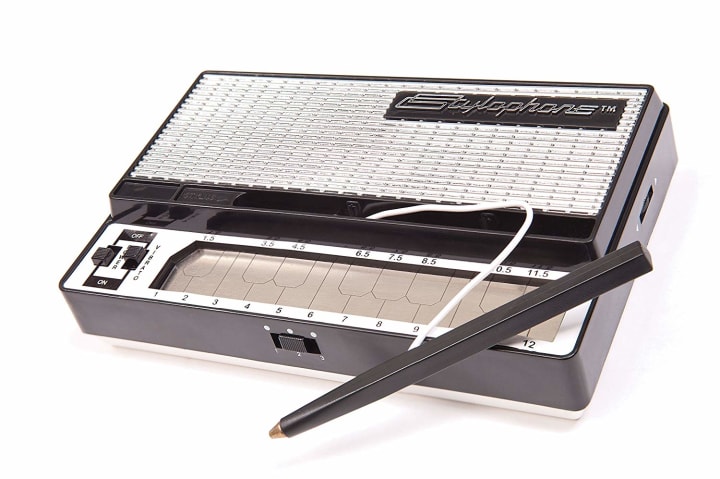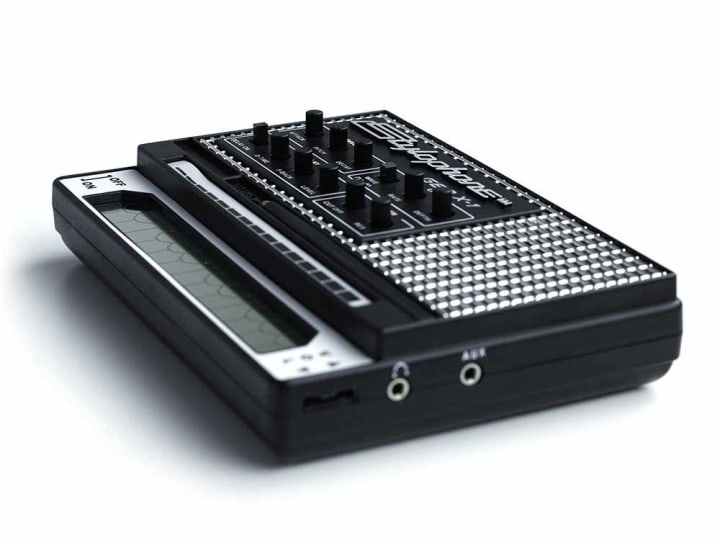 Going down the Stylophone product line, next one up is the Gen-X1. This is another portable synth box with two ways to play and can also be used as an effects box. What I like most about the usability of this one is that you can hook any other electronic instrument into the audio in and manipulate those sounds to your heart's content. The Gen-X1 has a built-in speaker for playing around on the spot and is run off batteries. It includes an LFO and filter cutoff, tons of delay options, sub-octave switches, and Pulse Width Modulation button which can be used to create a chorus effect. This one costs a little more than the other two types of Stylophones but that’s because you can do so much more with it. The Stylophone Gen-X1 retails for under $70.