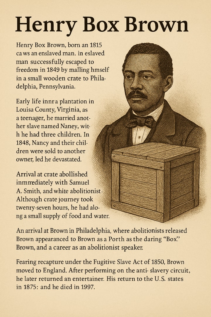 From that moment forward, the world knew him as Henry “Box” Brown, the man who had delivered himself from slavery. And though the path ahead would take him across oceans and stages, through triumphs and uncertainties, nothing would ever compare to the moment he stepped out of that crate—reborn into freedom.