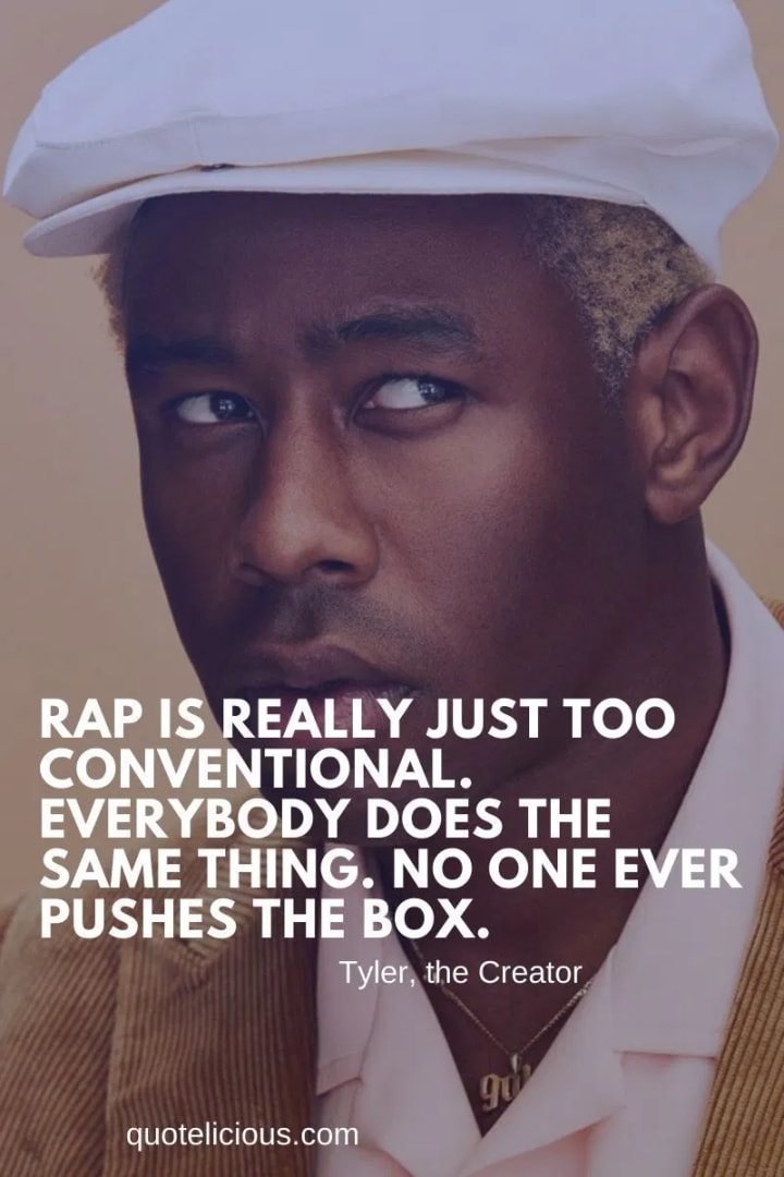 When I think of Tyler The Creator I imagine Will's jokes and larger-than-life persona, Carleton's preppy fashion style, and Jazz's chill, nonchalant attitude, from the 90s sitcom The Fresh Prince of Bel-Air.
