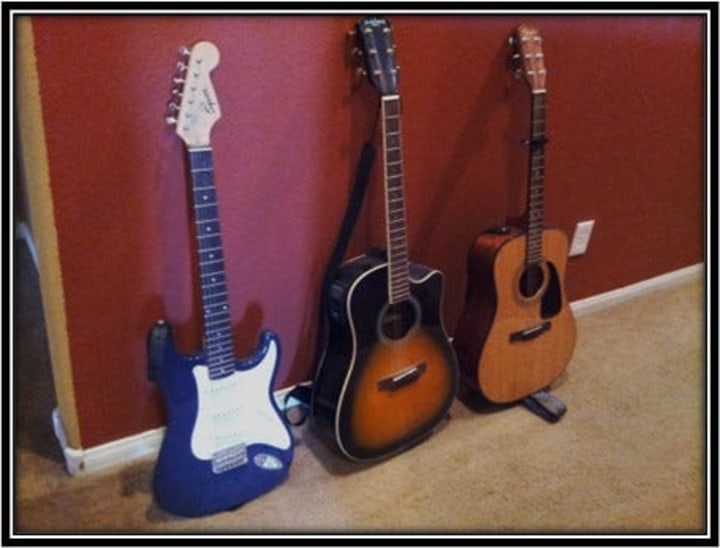 These days, my guitar playing has risen to the level of a credible rhythm guitarist. I may not be confused with a "shredding god", but it's far from where I imagined myself when I was pretending to play my red toy guitar at age 13. I have also challenged myself to start practicing fingerpicking on guitar which now gives me something new and interesting to aim for.