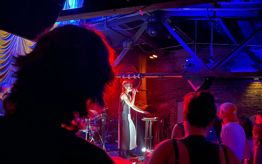 POLIÇA's show on Friday, June 17th, 2022 was at The Foundry, which is a 450-capacity "club within the club" at The Fillmore Philadelphia. The Foundry is on the top floor of The Fillmore; it's complete with its own private side entrance, found on the mezzanine level off to the side of The Fillmore's street-facing main entrance. The Foundry — a second live music club that manages to feel just as exclusive as it does intimate — is the perfect place to dance while getting close to singer-songwriters on showcase, local musicians and smaller acts on tour, and DJs at their soundboards infusing sick beats throughout the lounge.