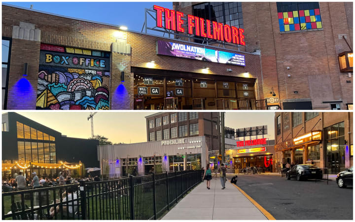 The Philadelphia Fillmore, on the other land, opened in its current iteration in Philadelphia's Fishtown district in 2015. That's when Live Nation converted the historic 100+-year-old Ajax building on Frankford Avenue to what it is today, a modern-day and beloved musical mainstay of the Philly music scene. (The building has operated under many names and managements throughout its long years, including as a dance hall in the 1910s and as a roller rink in the 1940s. It originally opened its doors in 1907 as Ajax Metal Co., a metalworking complex.) Live Nation's 2015 re-opening of the 25,000-square-foot venue upholds the building's industrial architectural elegance, embodying an undeniably cool gritty rock vibe in the now-iconic state-of-the-art music gem.