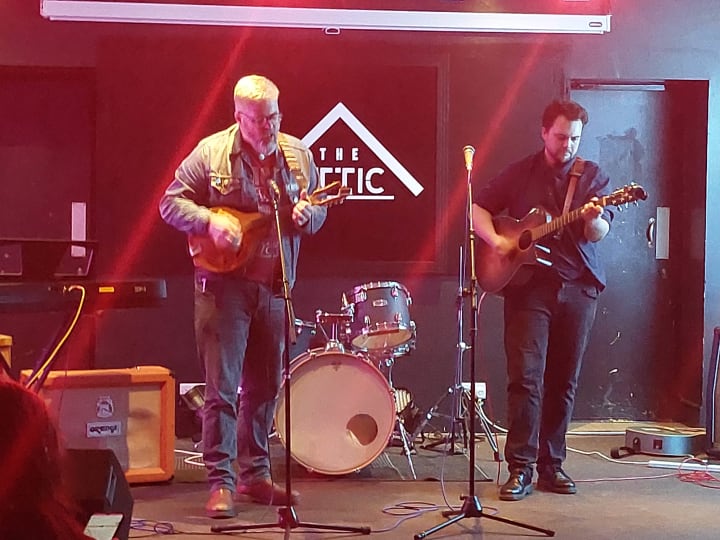 Next up we have a brand new duo that I am going to be taking all the credit for. It's the guillotine union boys. Here they are making their debut at The River Studios' open mic, at the venue they first performed solo on the same bill and met. They also made their debut gig at the Rail Way Inn on the 2nd of April. Looking forward to playing more gigs with this duo. Incredible foot stomping sounds.