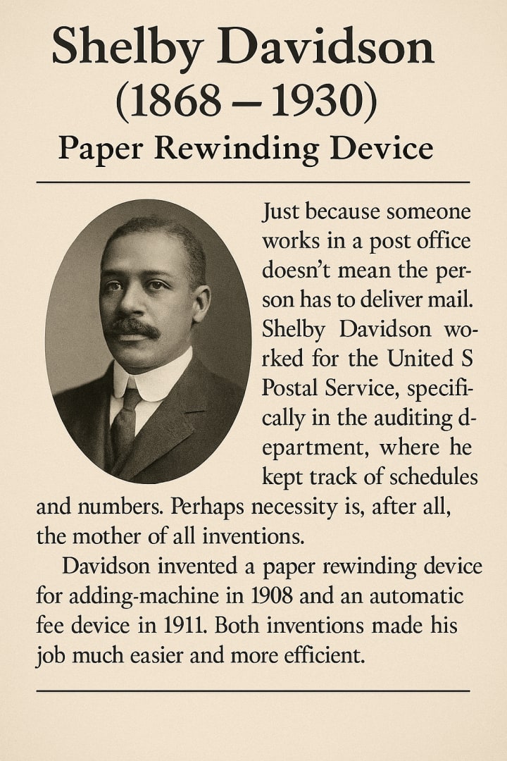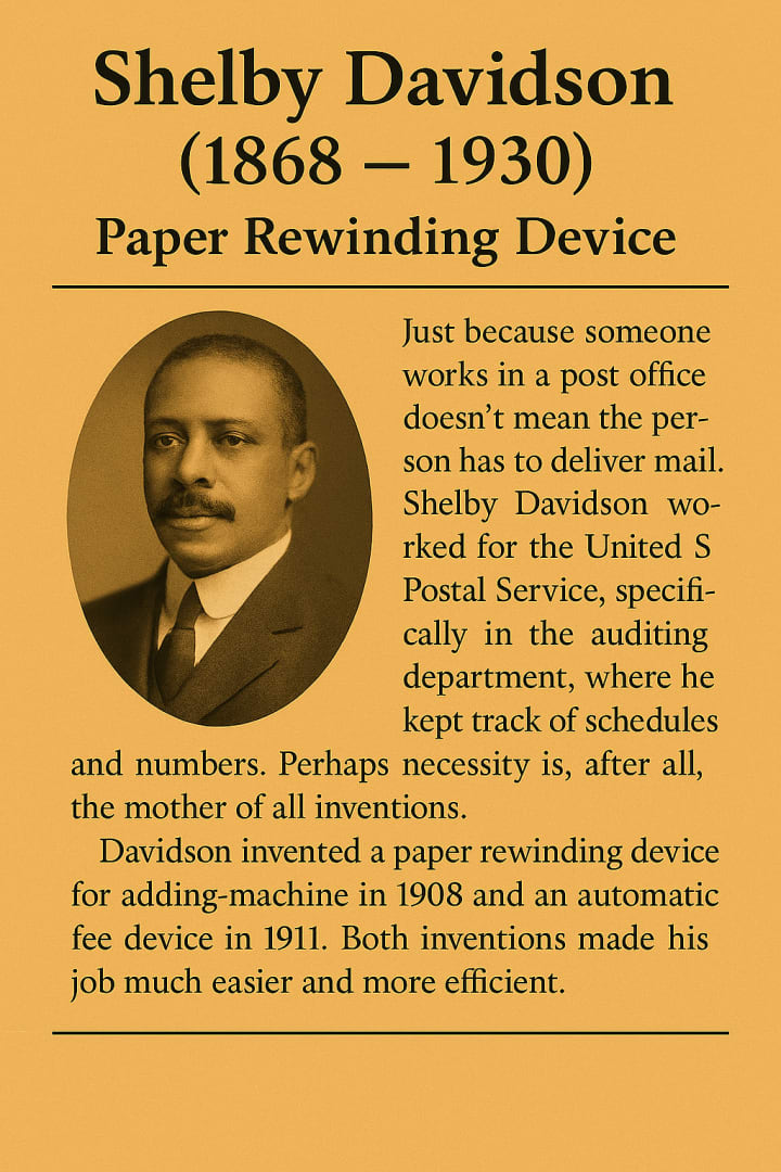 In an era when America’s rapidly expanding postal system depended on accuracy, timing, and mountains of paperwork, one man working behind the scenes imagined a better way. His name was Shelby Davidson (1868–1930)—a United States Postal Service auditor whose inventions transformed office machines and helped usher in a more efficient age of clerical work.