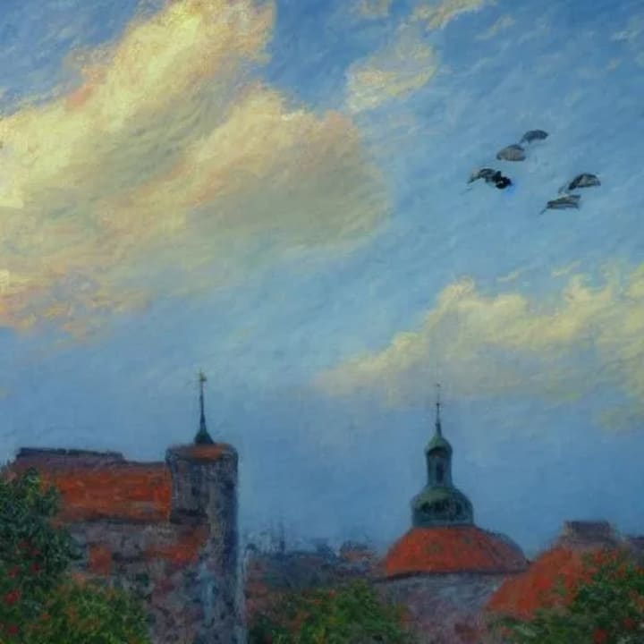 In the hush of dawn, morning light gleams, Birds take flight, chasing sunbeams. Their wings tell stories of skies vast and wide, and the freedom of the human mind.