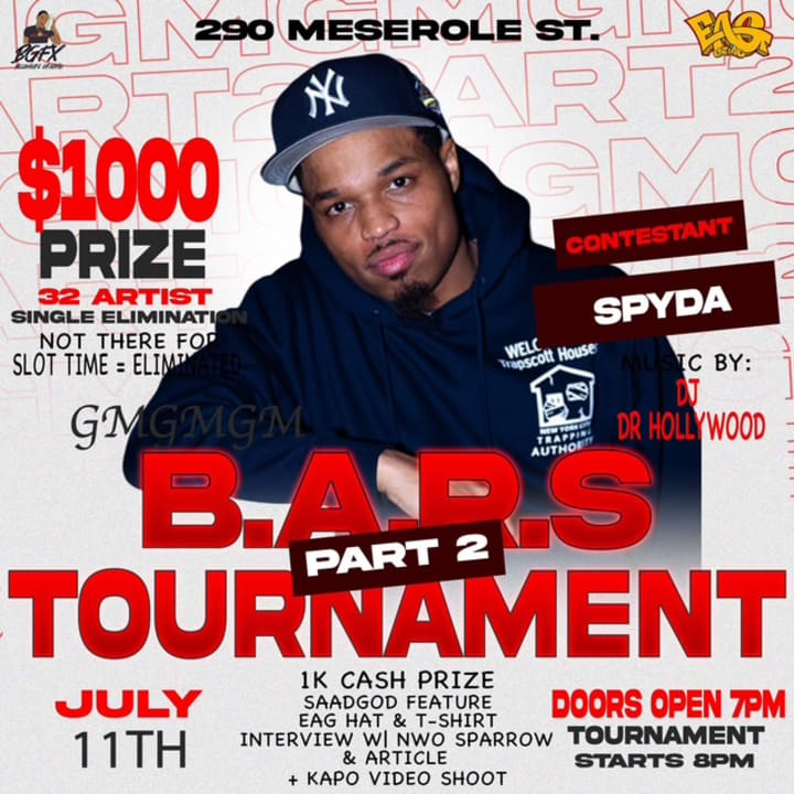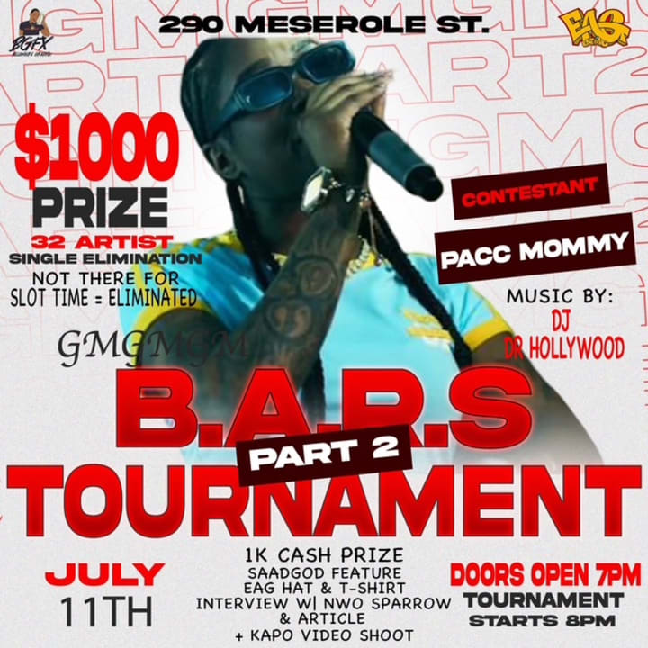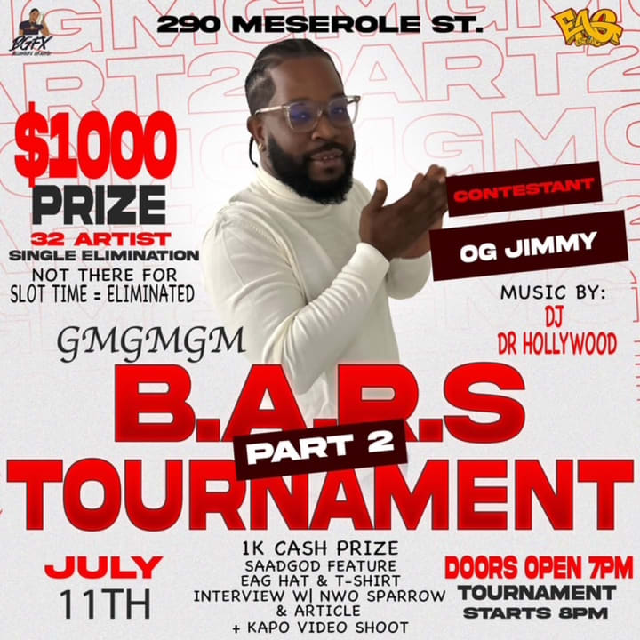 The B.A.R.S. 2 rap tournament isn’t just about spitting bars—it’s a high-stakes war of artistry, where lyrical assassins and stage demons collide in a song-for-song knockout format. The next series lineup is stacked with JA Bos, Promise, King Savage, Spyda, Chanel Well Fed, Des The Menace, OG Jimmy, Pac Mommy, and Swift and more—but only one can walk away with the grand prize: $1,000, a Saadgod feature, EAG merch, an interview with NWO Sparrow, and a Kapo-directed video shoot.