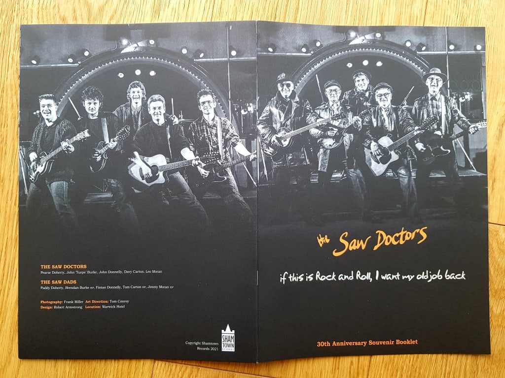 I was first made aware of The Saw Doctors when my friend Mike O'Brien (CEO of Opencast and partner in Mog On The Tyne Cat Cafe) told me about the cover of the album "If This Is Rock And Roll, I Want My Old Job Back" which featured their dads on the front cover and the band on the back cover in identical poses. I was in Sunderland and bought a copy from Volume (another sadly missed record shop) and I completely loved it.