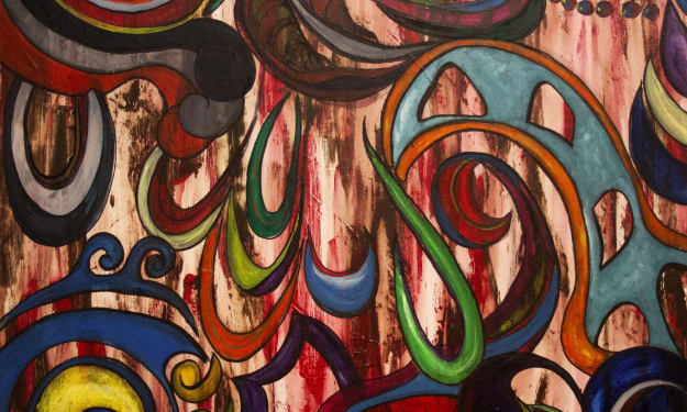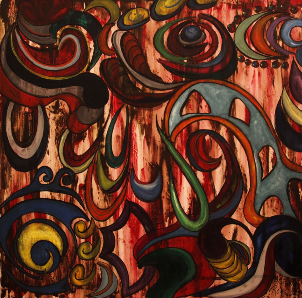It wasn't until my adult life that I discovered the ability to express what I was able to see and feel with music. I began washing away the backgrounds of my canvases. This was the static that I heard day in and day out that I struggled with to pull the messages forward to try and comprehend the abstraction. I wanted to convey to my viewers visually what it was to experience sounds out of order, mutely, or only through vibrations, allowing texture to interpret every drum beat or vibration. I painted bright and muted hues to express the crescendo and fall of every measure, the economy of the lines and curves of composition were the conductors to deliver the audio symphony of my experiences. Since the canvas is limited much as humble sheet music to a primitive dimensional plane I became frustrated that my viewer's field of vision obscured the message that I was trying to convey. How could a hearing endowed individual grasp the concept without walking in the very shoes that I have been cursed with? I did not want my art just to be an aesthetically pleasing piece of décor. A composer writes parts for every instrument in a symphony thus the layers of the music unfold, interlay, blend and dissipate.